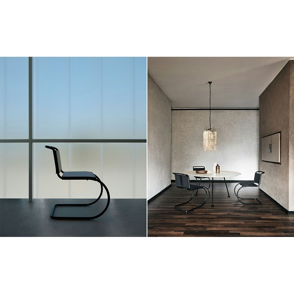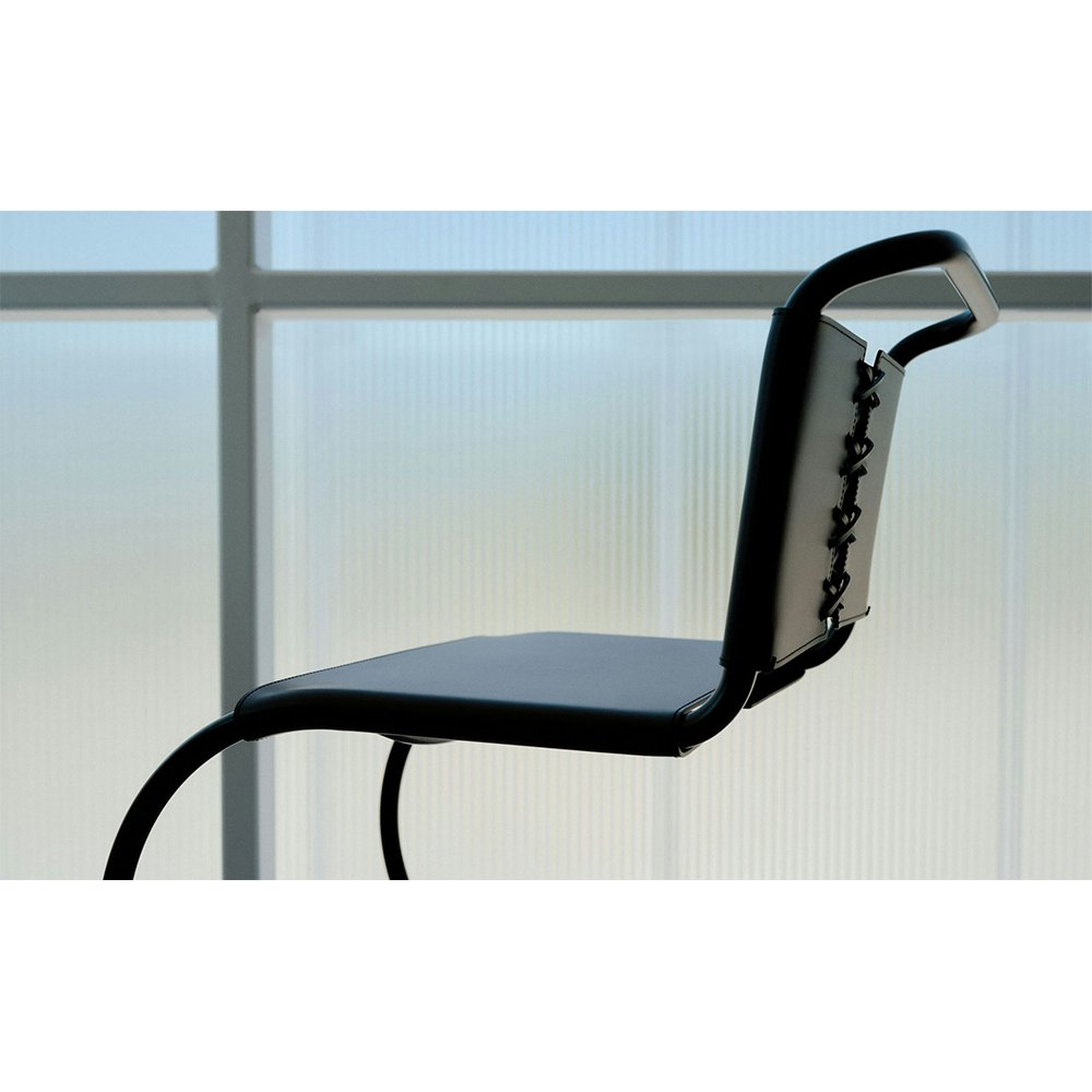 受包浩斯大師馬塞爾·布勞耶的影響,路德維希·密斯·凡·德·羅很快便發現了管狀鋼材的優點。他將這種現代材料與十九世紀經典鐵搖椅的造型結合,於1927年設計出了MR椅。憑藉其優美的曲線和懸臂結構,這款椅子造型獨特,能夠靈活地支撐就座者的動作,帶來舒適的坐感。 1948年,密斯授予Knoll公司獨家生產其家具的權利,其中包括MR系列。