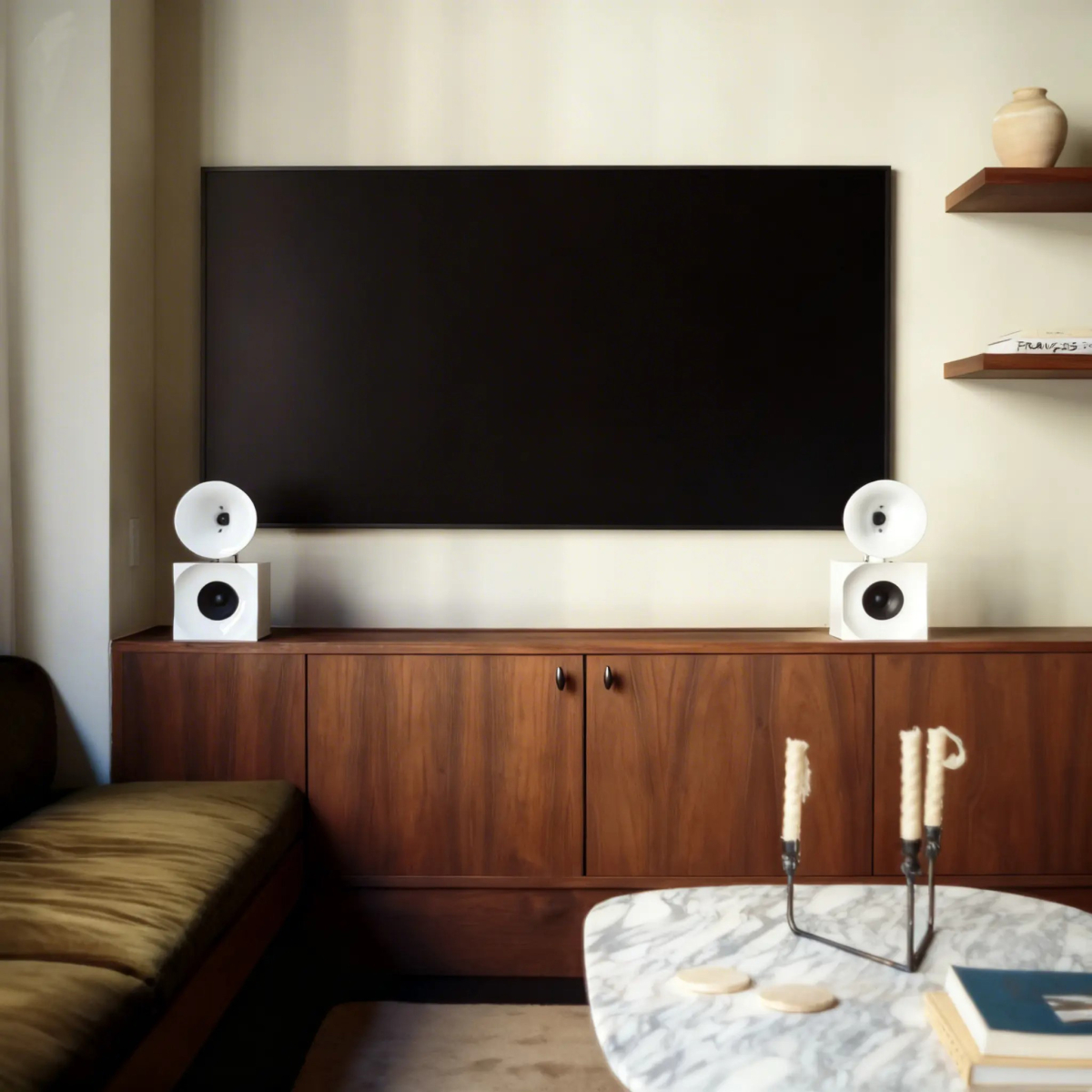 Hush體積小巧,卻擁有強大的表現力,旨在為現代生活空間帶來豐富而沉浸式的音效。它尺寸適中,完美契合紐約公寓,同時又足夠精緻,能夠融入任何環境,在不佔用過多空間的情況下,呈現飽滿自然的聲場。