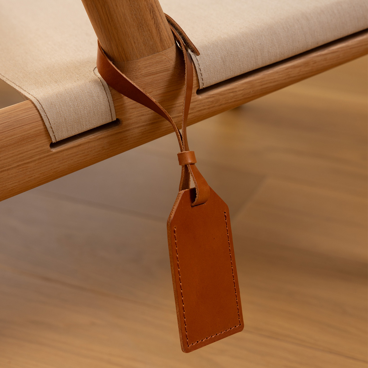Eikund 現已推出 60 件 Hunter 帆布休閒椅首發版,採用對比色縫線,並配有獨一無二的編號黃銅紀念幣。吊牌也專為這 60 件產品定制,採用 Hunter 椅原生產過程中回收的皮革邊角料製成,並附有簽名證書。