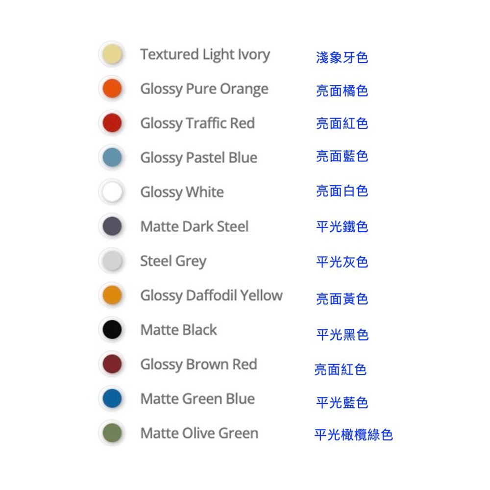 *其它顏色選購需另支付烤漆費,共176色,可下載PDF色票參考喜愛之顏色,