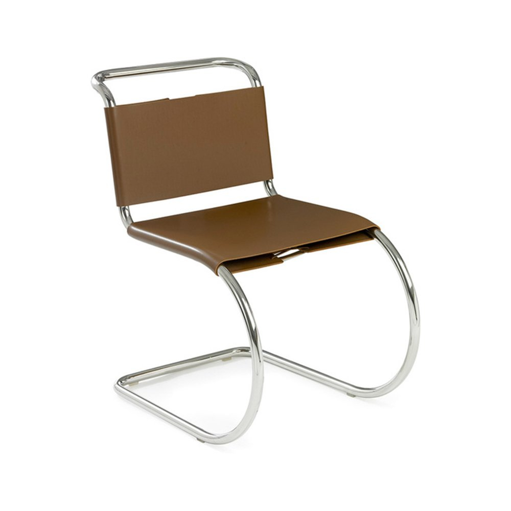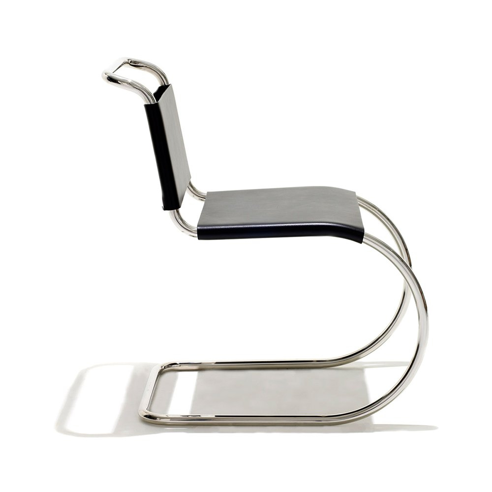 受包浩斯大師馬塞爾·布勞耶的影響,路德維希·密斯·凡·德·羅很快便發現了管狀鋼材的優點。他將這種現代材料與十九世紀經典鐵搖椅的造型結合,於1927年設計出了MR椅。憑藉其優美的曲線和懸臂結構,這款椅子造型獨特,能夠靈活地支撐就座者的動作,帶來舒適的坐感。 1948年,密斯授予Knoll公司獨家生產其家具的權利,其中包括MR系列。