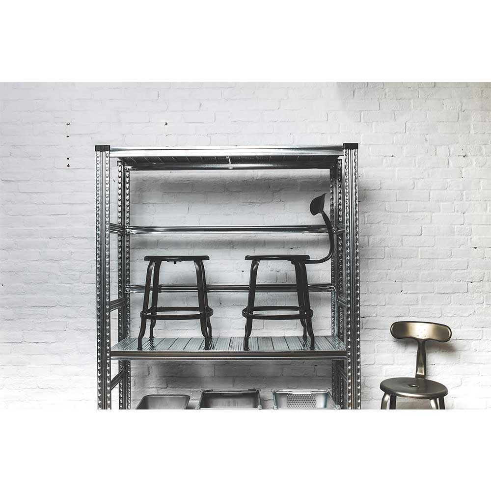 層架組裝不需任何螺絲,卡榫設計結構固定層板組,32mm極短卡榫間隔,能依需求靈活調整高度。金屬元素帶入微微工業風格,簡約時尚創造好品味,有別於一般業務用層架,非常適合居家室內空間擺設。