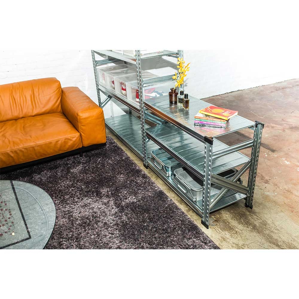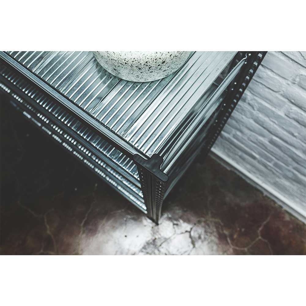 層架組裝不需任何螺絲,卡榫設計結構固定層板組,32mm極短卡榫間隔,能依需求靈活調整高度。金屬元素帶入微微工業風格,簡約時尚創造好品味,有別於一般業務用層架,非常適合居家室內空間擺設。
